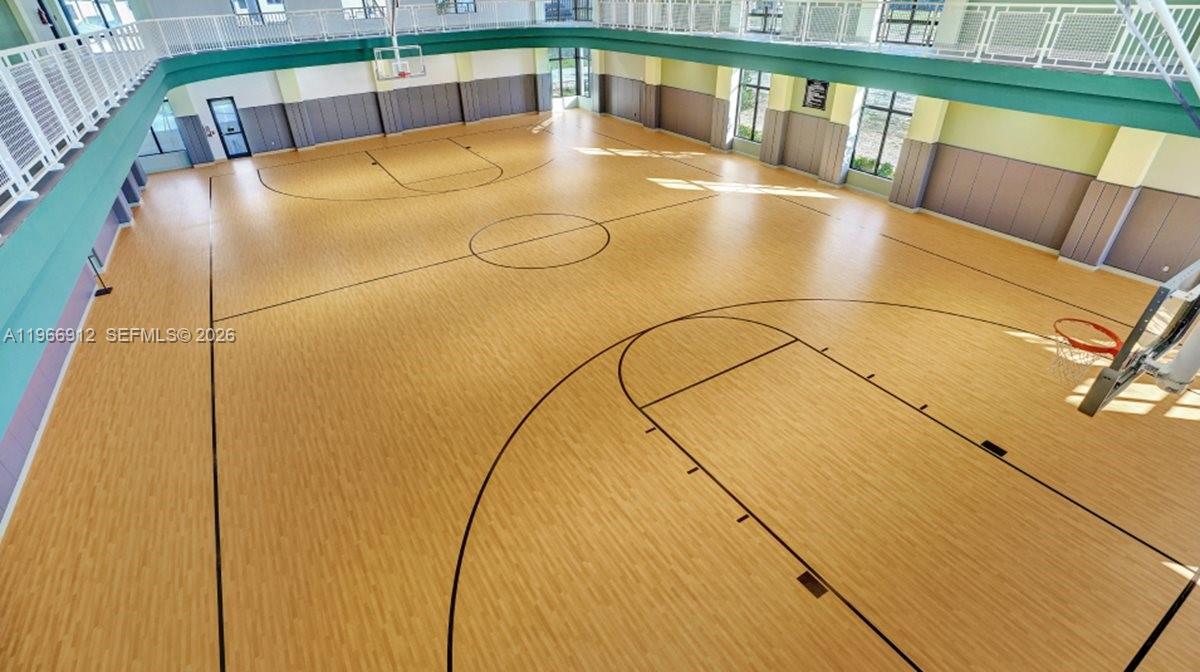 This 2 bedroom 2 bathroom condo in the heart of downtown Doral is quite unique. Perfect for an investor, a family with adult kids living at home, or someone with an at-home business - this unit has a large studio style bedroom equipped with a wet bar, fridge, and separate entrance to the unit. Located on the forth floor, views are excellent, and you can walk or take a freebie to downtown. The community boasts resort style amenities - with a large pool, clubhouse, full size basketball court, 2-story gym, and track. This condo is a gem at this price!